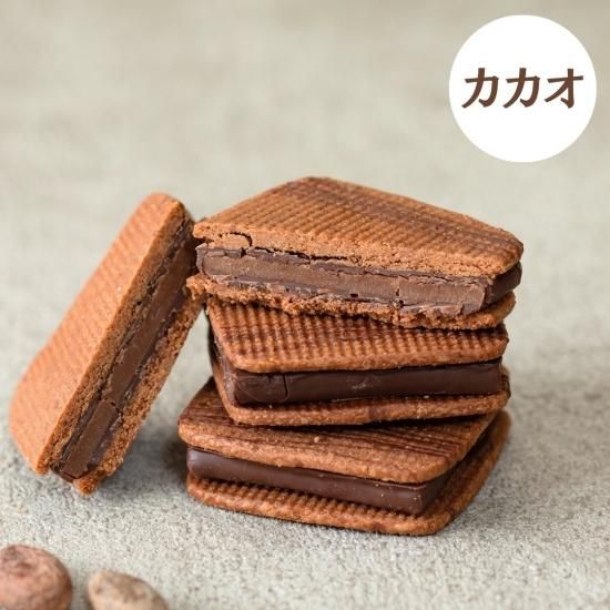 当店の代表商品であるチョコレートサンドの最もベーシックでチョコレートを味わうことができる商品です。濃厚でなめらかな食感を味わうことができる生チョコをサクサククッキーでサンドしました。濃厚なチョコレートの中に、しっかりとカカオの風味が感じられるため、甘すぎず上品な味わいが特徴です。