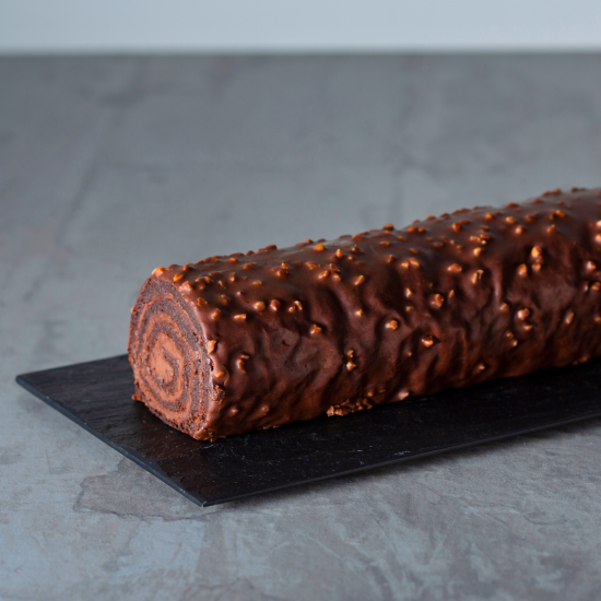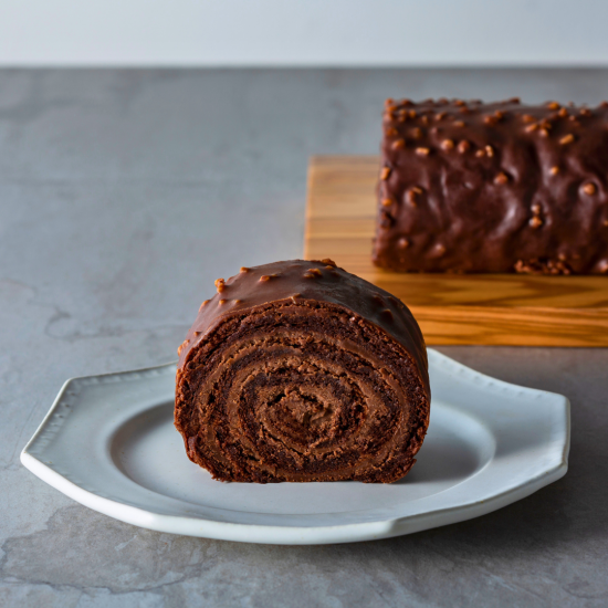 ふんわりとしたチョコレート生地の中にチョコレートガナッシュとチョコレートソースを重ねた味わい深いチョコレートロールケーキです。チョコレート好きにはたまらない、ロールケーキは、濃厚なチョコレートを感じられながらもたくさんにお客様に楽しんでいただけるよう、少し甘めに仕上げました。ご家族で、おやつにチョコづくしのロールケーキはいかがでしょうか。