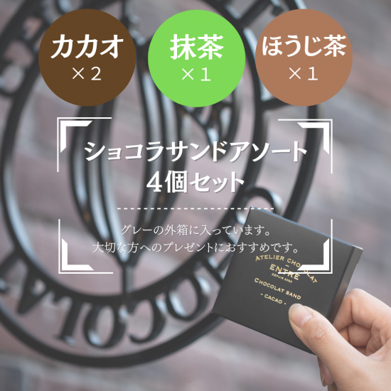 【期間限定】ショコラサンドアソート4個セット(カカオ×2、抹茶×1、天竜ほうじ茶×1)